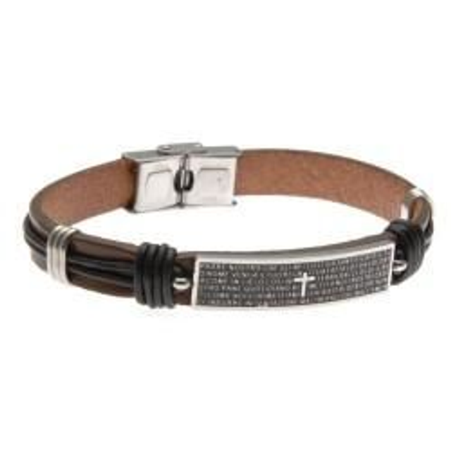 Bracciale uomo in pelle marrone con souvenir religioso